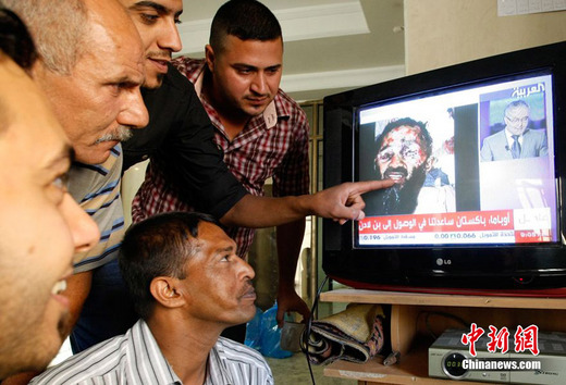 當地時間5月2日,伊拉克巴格達,當地民眾收看關于本·拉登死訊的新聞。