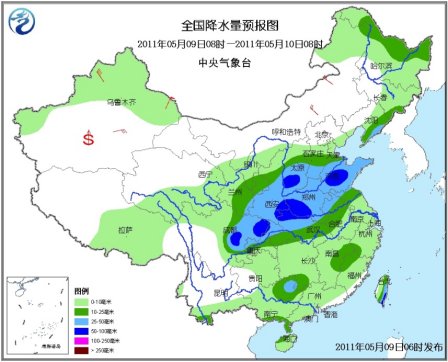 ????9日08時至10日08時,新疆北部和西部、青海東部和南部、西藏東部、西北地區中東部、內蒙古東北部、東北大部、華北大部及其以南大部地區有小到中雨或雷陣雨天氣,其中,陜西中南部、華北南部、黃淮大部、江漢北部、四川盆地中北部、重慶北部、廣西東北部、臺灣東部等地的部分地區有大雨,局地有暴雨,上述部分地區并伴有短時雷雨大風或冰雹等強對流天氣;新疆大部、內蒙古大部等地有4~6級風,山口地區風力可達8~9級,南疆盆地的部分地區有揚沙或浮塵天氣。南海將有6~8級、陣風9級的風,東海將有6~7級風。