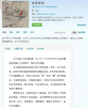 ????16日,故宮博物院通過微博對外發布聲明,就此事向公眾道歉。