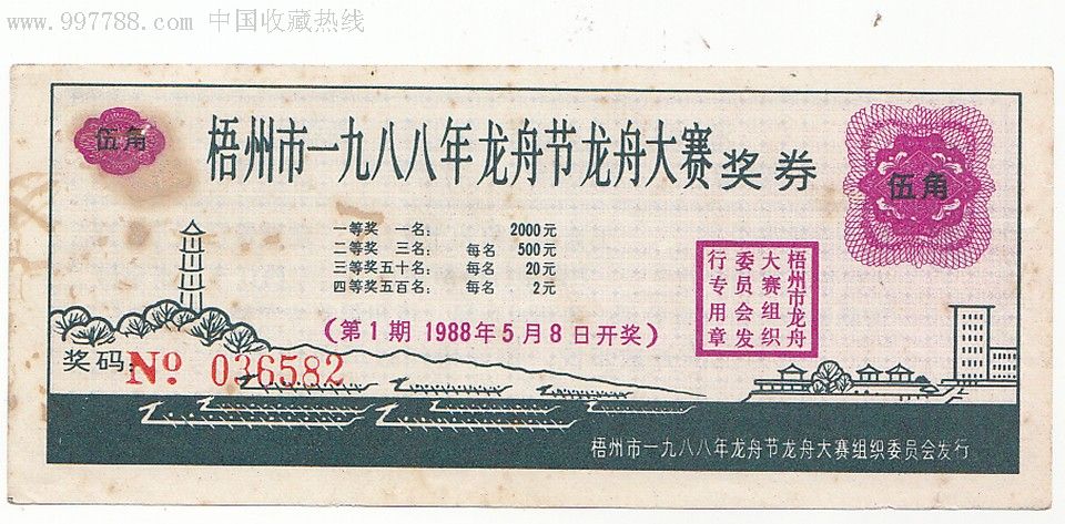 ??? 保證你沒見過,1988年龍舟節龍舟大賽獎券。每張只要5毛錢,俱往矣,今天已經完全看不到這種群眾互動了。龍舟活動需要創新,同時也要