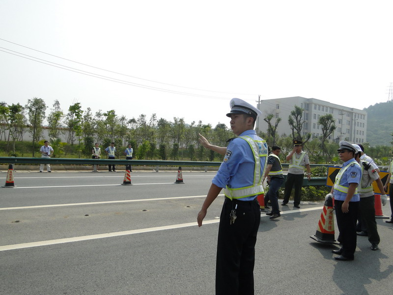 交警疏導交通,指揮過往車輛從改好的另一車道通過。
