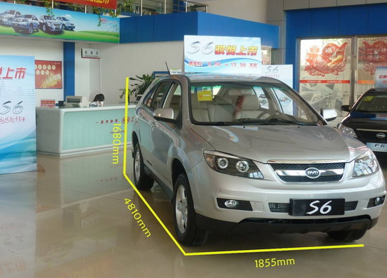 ????比亞迪S6長寬高分別為4810/1855/1680mm,加上頂部行李架高達1725mm,軸距為2720mm,是輛不折不扣的全尺寸SUV,190mm最小離地間隙也使得整車擁有絕好的通過性能。