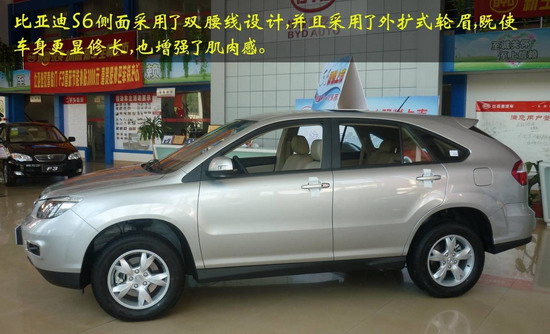 比亞迪S6側面采用了雙腰線設計,并且采用了外擴式輪眉,既使車身更顯修長,也增強了肌肉感。