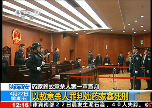 ????新華網西安4月22日電(記者史競男、崔清新)22日上午,西安市中級人民法院對被告人藥家鑫故意殺人案作出一審判決,以故意殺人罪判處藥家鑫死刑,剝奪政治權利終身,并處賠償被害人家屬經濟損失45498.5元。