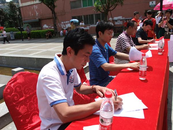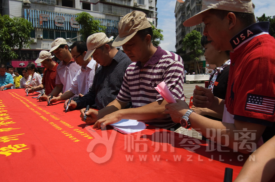 ??? 6月9日,梧州市餐飲服務單位食品安全168字誠信宣言簽名活動儀式在潘塘公園舉行,我市多家餐飲服務單位代表參與活動,簽署誠信諾言。