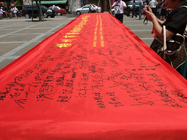 最后,各示范店、餐飲服務單位、政府機關以及全體參加活動的代表及市民紛紛在“梧州市餐飲服務單位食品安全168字誠信宣言簽名活動儀式”上簽下了自己誠信的一筆。活動得到廣大各界人士的稱贊與積極參與,它的開展也將會梧州構建食品安全城市邁出新的一步。 |