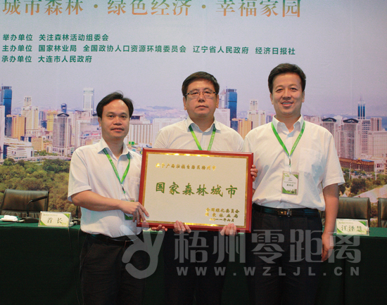 在論壇開幕式上,全國綠化委員會、國家林業局授予梧州、大連、揚州、瀘州、洛陽、石河子、龍泉、琿春等8個城市“國家森林城市”榮譽稱號。國家林業局黨組成員陳述賢宣讀了有關決定。市長王凱走上主席臺接受榮譽牌匾。