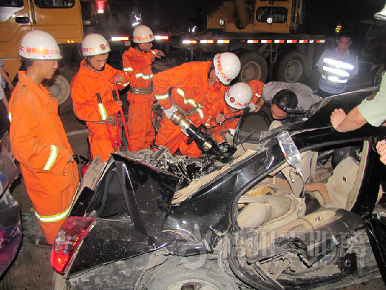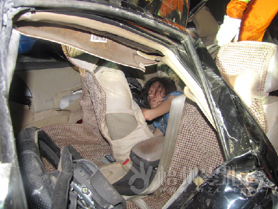 經過現場勘察和了解情況,現場調來重型吊車,利用吊車和消防車自帶鋼繩牽引系統配合的方式將大貨車吊起的同時慢慢將小轎車抽出。11時30分左右,吊車到場后立即實施作業,很快大貨車和小轎車就被分離。兩車分離后,消防官兵又利用液壓擴張鉗、切割機和撬棍等救援工具對變形的小轎車體進行破拆。11時42分,被困女子被成功救出,并送上救護車。經現場醫護人員診斷,受困女子并無生命危險。