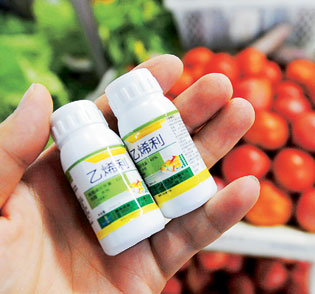 記者在基層采訪中發現,菜農使用“催熟劑”用法用量難以監控?!斑@種‘催熟劑’用多少都是根據經驗。到底有沒有毒害,我們也不是很清楚,具體也沒人來管。”一些地方的菜農說,有了“催熟劑”,想讓它什么時候紅,它就什么時候紅。如果想成熟快一點就把濃度配大一點,想遲成熟幾天,就把濃度配低一點。