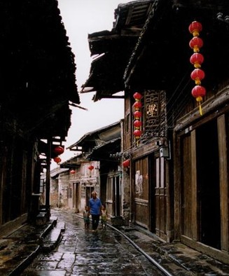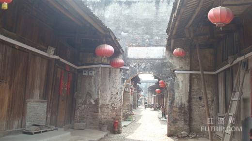 ????古老的大圩老街順著漓江綿延2公里長,不寬的街道上鋪著青石板,石板路兩邊是保存完好的老房子。古鎮現在還保留著許多竹編作坊、草鞋作坊、傳統的喪葬用品店、草醫診室、老理發店等一批古老的手工作坊。閑著無事的老人們或是在街邊看些發黃的書,或是聚集在一起喝茶打牌,平靜地生活著,守望著這最后的古老。石板路旁的房子多為青磚、青瓦的兩層明清建筑,歷史滄桑隨處可見。