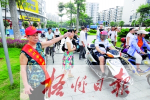 ????在“我為城市建設出份力”系列志愿活動中,一支由30多名老人組成的“巾幗志愿者”服務隊引人注目。在活動期間的每天早上7時到8時交通高峰時段,她們分批輪流在夢之島廣場的交通島上崗,協助維持斑馬線的通行秩序,勸導行人文明過馬路。作為華發長者,她們的志愿服務行動得到了人們的尊敬,從而自覺聽從指揮與勸導。