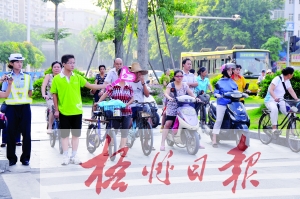 按照工作計劃,市委宣傳部、市文化新聞出版局、梧州日報社、市廣電局、市衛生監督所派出的志愿者,參加了8月4日的文明交通勸導工作。當天17時30分至18時30分,正是下午下班高峰期,密集的人流、車流,浩浩蕩蕩向市區各個路口涌來。