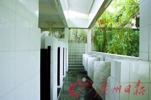 ????昨日記者來到黃花崗公園,幾經指引終于找到了這個隱于綠樹之中的“五星級廁所”。“看起來不像廁所,倒是像座別墅”,去拍照的攝影記者如此說道。只見這座廁所掩映在綠樹叢花之中,門口還有一大束竹子,廁所外面設置了凳子。整個廁所除了男、女廁外,還專門有一座殘疾人廁所,另外還有一間工具房。