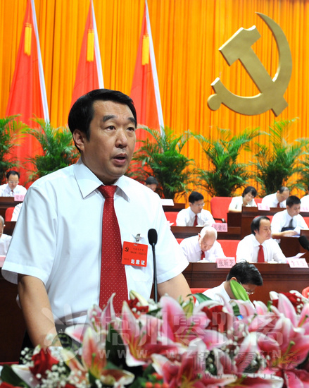 ????劉志勇同志代表中國共產黨梧州市第十一屆委員會作題為《立足新起點 強抓新機遇 為加快實現富民強梧新跨越而奮斗》的工作報告。