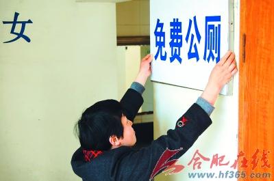 ????昨天下午,管理員胡大姐在逍遙津西門南側的公廁貼上了“免費公廁”的牌子,從這一刻起,廬陽區城管局直管的67所公廁全部免費開放。至此,全市已有包河區、蜀山區、廬陽區等多個區超過100座公廁免費開放。但免費開放后,少數市民對公廁設施卻毫不愛惜,這讓合肥的文明程度打了很大的折扣。