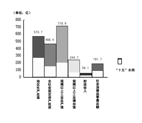 ????到2015年,地區生產總值超1000億元,年均增長12%以上;工業總產值超2000億元,年均增長18%以上;固定資產投資超940億元,年均增長15%以上;財政收入突破120億元,年均增長15%以上;三次產業結構調整為9:60:31,其中工業增加值的比重達到55%左右,工業化率達到6.1,超過全國平均水平。? |