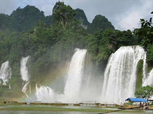???? 它起源于廣西靖西縣歸春河,終年有水,流入越南又流回廣西,經過大新縣德天村處遇斷崖跌落而成瀑布。瀑布氣勢磅礴,一波三折,層層跌落,水勢激蕩,聲聞數里。瀑布河水時急時緩,時分時合,迂回曲折于參天古木間;更有花草掩映,百鳥低徊。 江水忽遇斷崖,飛瀉而下,站在瀑布之下,水氣蒸騰,上接云漢,其滾滾洪流,折而復聚,連沖三關。仰望瀑頂,群峰浮動,巨瀑如海傾;水沫飛濺,如萬斛明珠。德天瀑布雄奇瑰麗,變幻多姿,碧水長流,永不涸歇,無論春夏秋冬,陰晴雨霧,均各具情態。其魄力,其氣勢,其風采,震魂攝魄,搖動心旌。