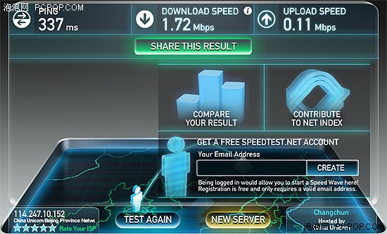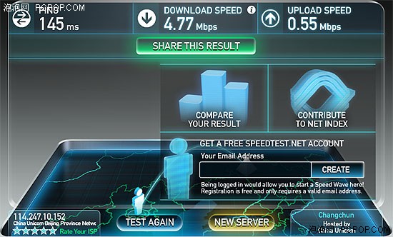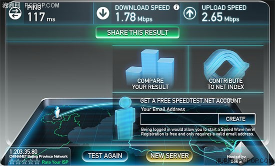SpeedTest測試我們采用每家網(wǎng)絡(luò)連續(xù)測試三次的辦法,以防止測試過程中網(wǎng)絡(luò)狀況的突然變化引起的成績大起大落現(xiàn)象。下面是測試成績: