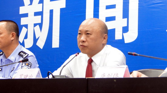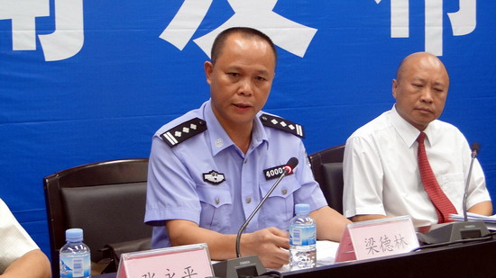 市公安局副局長(zhǎng)梁德林在“天網(wǎng)工程”建設(shè)新聞發(fā)布會(huì)上作介紹。覃燕霞/攝