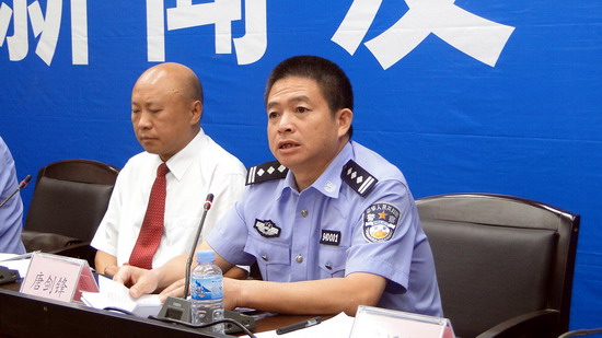 市交警支隊(duì)隊(duì)長(zhǎng)唐劍鋒在“天網(wǎng)工程”建設(shè)新聞發(fā)布會(huì)上作介紹。覃燕霞/攝
