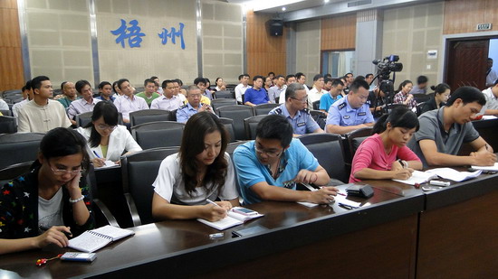 9月26日上午9時,梧州市“天網(wǎng)工程”建設新聞發(fā)布會在市廣電中心三樓會議室舉行。覃燕霞/攝