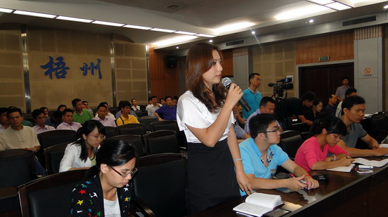 西江都市報記者向市公安局提問。覃燕霞/攝