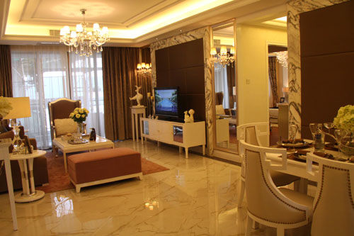 帶豪裝發售震撼梧州樓市記者現場看到,麗港華府此次推出8間全新的豪裝樣板房,包括94平方米的標準裝修房201單位、245平方米的打通戶型703-704房單位、143平方米的705單位,以及上下打通的復式203-303單位、204-304單位。其中,245平方米的奢華套房、另外附帶100多平方米的大花園、絕版一線江景視野、6.3米超高的層高,全屋品牌家居、現代低調奢華的軟裝,確實讓來現場體驗豪裝的客戶震驚不已。王先生通過朋友介紹,專程來麗港華府看樣板房,見多識廣的他對復式豪裝單位贊賞不已,“梧州真正的一線江景大戶型,如240平方米的單位本來就非常珍稀,而6.3米層高的復式更是稀少,還附送100多平方米的大花園,這在梧州房地產界是史無前例的。” 據了解,麗港華府將精裝修的理念帶入2期星際,此次展出4套裝修標準,包括900元/平方米的標準裝修、2000元/平方米和2500元/平方米的豪裝。所有裝修材質都在銷售中心現場進行展示,從品牌櫥柜、龍頭、衛浴到高貴地板、衣柜、智能化設施等,客戶可進行實實在在的體驗。 “質量非常高,價格也相當實在。”剛裝修過自己住房的李先生對麗港華府的樣板房裝修品質和材料由衷地感嘆。據了解,麗港華府此次公示的裝修標準著力在于提升樓盤的品質——復式單位和打通戶型大大增強了空間感,奢華、闊綽、大氣等元素撲面而來。淡雅的米黃彌漫著家的溫馨舒適感受,使得裝修檔次再上一個臺階。