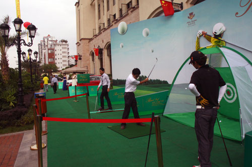 現場活動精彩紛呈據介紹,國慶期間,麗港華府啟動“高爾夫名流生活匯”體驗嘉年華活動,現場特邀來自廣州的高爾夫球專職教練現場指導。此外,活動期間現場還舉辦名流車展、模特秀等活動體驗品質生活,客戶還可參與蘋果掌上電腦大抽獎,紅酒品嘗,精美禮品派發等活動。 “我們通過高爾夫名流匯這一系列的活動,主要是為了把名流的生活元素注入樓盤中,讓業主和客戶著著實實感受到這種尊貴的上流生活氛圍。”麗港華府相關負責人介紹說。