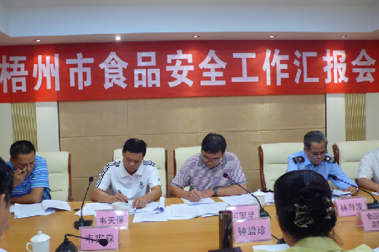 9月26日下午,在市政府12樓會議室召開市政府分管領導、各成員單位領導參加的食品安全工作匯報會。副市長鐘碧珍向自治區督查組匯報我市食品安全工作。鐘副市長主要匯報了四個方面情況:一是我市食品安全工作基本情況。二是采取的工作措施,即堅持“三項原則”,確保工作落到實處;狠抓“六項重點”,保持嚴打高壓態勢;加強源頭監管,努力實現標本兼治;實施綜合治理,重點解決突出問題;強化宣傳教育,培育全民參與意識;三是存在困難和問題,即監管環節存在不銜接的問題;經費投入有待加大;檢驗檢測資源配置不合理;相關法律法規配套不夠完善。四是下一步工作重點,即抓重點,帶全局;強機制,保落實;塑亮點,抓創新。