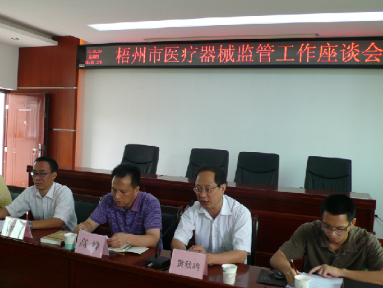 在會上,市局醫療器械監管科黃毅副科長和與會人員一起學習了醫療器械監管的相關法律法規,梧州藥品不良反應監測中心人員在會上講授了醫療器械不良事件的基本知識,通報了我市醫療器械不良事件上報病例數情況。然后,市局醫療器械監管科黃偉堅科長以及稽查科黃秋鳴科長對前段時間監管工作中發現的問題進行了通報,對今后工作進行了布置。