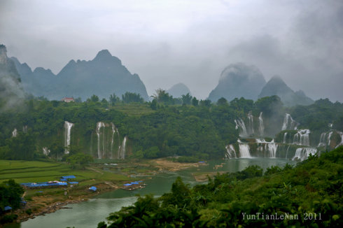 ????9月15—17日游覽廣西大新縣德天瀑布景區,當晚趕在日落前,沐著暮色,瀑布景區影影綽綽,第二天云霧濃重,瀑布景區宛若一幅幅水墨丹青畫。