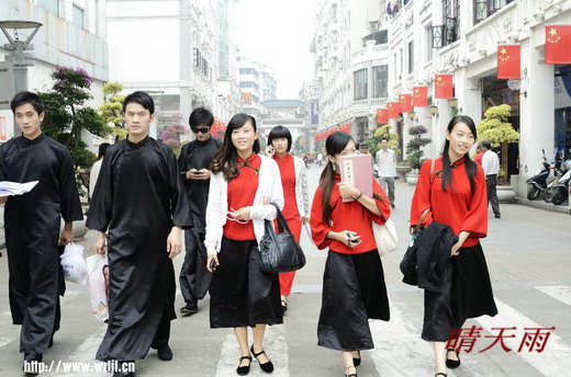 ????首日的拍攝中,劇組便先后前往騎樓城、龍母廟、金龍巷等地進行拍攝。幾位身穿戲服的主角置身鬧市中,吸引不少過往市民駐足觀看。“相機也能拍電影?”面對圍觀市民的疑問,編導陳遠良解釋說,“單反相機如果用得到位,也可以達到膠片機的效果,同時還不用擔心因為拍攝不好而造成膠卷的浪費,可以省下不少經費。
