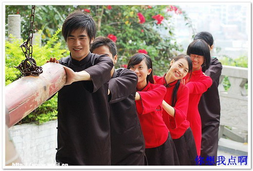 主演們在龍母廟忙里偷閑樂一把。零距離網友“你想我點啊”/攝