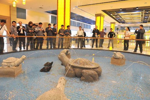 ????跟隨著游客,記者來到了樓下的龜苓膏文化博覽園,“好幽雅的環境!”幾位年長的游客們贊嘆不已。這個龜苓膏文化博覽園集游覽、參觀、品嘗、文化、購物等多功能于一體,博覽園內設歷史文化考古廊道、別致小園林、生產原材料展示柜、龜種標本展示臺、即食龜苓膏傳統制作間、即食龜苓膏品嘗廳、龜苓膏產品購物超市等參觀點。游客不僅可以看到龜苓膏、龜苓寶自動化生產的全過程,了解梧州龜苓膏的歷史文化淵源、梧州人對龜苓膏的特殊情結,還可以免費品嘗到各種口味的龜苓膏。