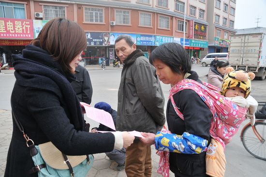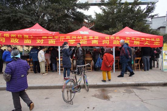 梧州零距離網站工作人員向群眾派發網絡問政的宣傳單。麥朝區 攝