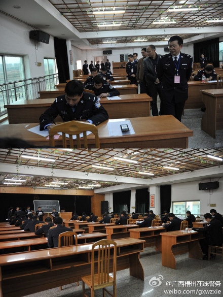 梧州零距離網訊 2月25日上午,梧州市公安局特巡警支隊科級以上領導競爭上崗考試在市公安局警察訓練學校舉行,來自市公安局12個部門共22人考試競爭特巡警支隊5個副職領導崗位,考試內容為信息化應用基本技能和公安基礎知識考試兩部分。副市長、公安局黨委書記、局長補祥斌,公安局黨委副書記、副局長陸志光,局黨委委員、政治部主任黃楚俊等領導親自到場巡查、監督考試情況。