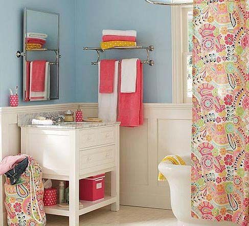 ????春天了,給素色的浴室一點顏色看看,只要花點心思,選一款漂亮的花色浴簾,就能把浴室打造得清新有趣。
