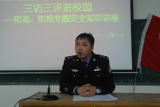 梧州零距離網訊(通訊員 吳建錦 覃立鵬)3月7日下午,特巡警支隊六大隊、西堤警務站、蝶山移動警務站共同組織了8名民警來到梧州學院西校區,舉辦了“三訪三評進校園——防盜防搶專題安全知識講座”,將安全防范工作送到同學們當中,為同學們上了一堂精彩的安全教育課。200多名學生參加了講座。