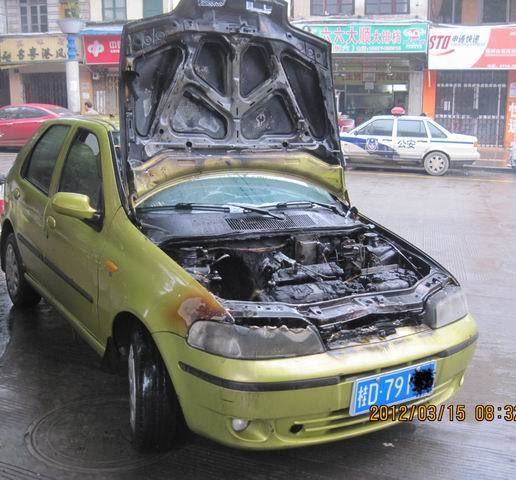 經消防員檢查,該車是由于汽油管老化,導致汽油外溢引起自燃。