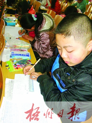 與梧州主比賽場不同的是,蒙山分賽區的比賽要求現場即興創作,不能帶底稿進場參考???,小選手參賽時多么認真。 邱潔玲 范萌 攝
