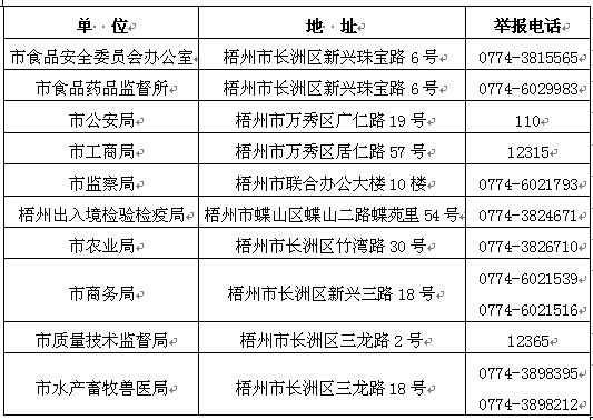 梧州市食品安全違法行為舉報電話
