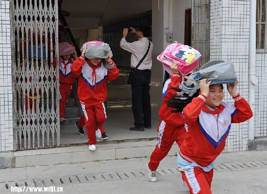 當日活動,在交警對全體學生進行了詳細的地震安全知識教育后,緊接著開展了防地震安全疏散演練活動。當總指揮發出“因地震引發火災,全體師生緊急疏散”命令,老師們立即指揮學生雙手用書包護頭,迅速、有序地向操場安全區域撤離。學生到達操場指定位置后,各班老師迅速就位維持好各班學生紀律,清點人數,報告總指揮。