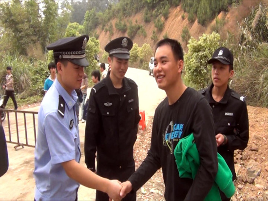 民警遞上面包與礦泉水給小男孩吃,并一邊與他溝通,哄他說出了其父親的聯(lián)系方式。為了盡快找到迷路小男孩的父母,民警馬上與其父親聯(lián)系,并安慰小朋友他爸爸就到了。經(jīng)過警民的共同努力,迷路小男孩的父母趕到執(zhí)勤點(diǎn),領(lǐng)回了走失的小孩,對派出所民警及熱心助民行為連聲道謝。