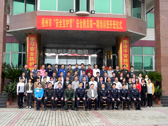 梧州零距離網訊(記者 覃燕霞 通訊員 梁觀遠)今日(4月6日)上午,梧州市“安全寶護營”安全教員培訓班在市人民警察訓練學校舉行開班儀式,來自三縣一市27所學校的54位教師將接受治安、交通、禁毒等方面的公共安全教育培訓。
