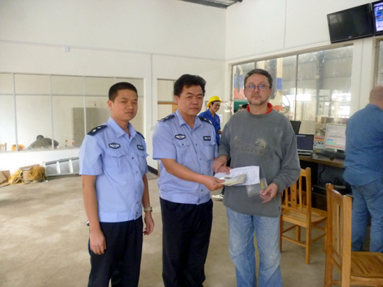 近日,藤縣公安局太平派出所所長黎德萍帶領(lǐng)民警走進太平鎮(zhèn)最大的木材加工企業(yè)梧州新凱驊木業(yè)有限責任公司,開展公安機關(guān)"三訪三評"深化"大走訪"活動,在走訪過程中,黎所長了解到該企業(yè)有五名意大利籍高級技術(shù)人員正為辦理護照簽注發(fā)愁,馬上與藤縣公安局出入境部門聯(lián)系,隨后安排民警將他們的資料錄入警綜平臺,并由專門民警協(xié)助他們辦理護照簽注,很快就為該企業(yè)的五名外籍技術(shù)人員辦理好了護照簽注手續(xù),并把護照簽注手續(xù)親自送到外籍技術(shù)人員手中。藤縣公安局太平派出所民警雷鋒式的貼心服務(wù),感動了五名外籍技術(shù)人員,他們在接過護照簽注手續(xù)后連連稱贊說:“中國警察是好樣的”!