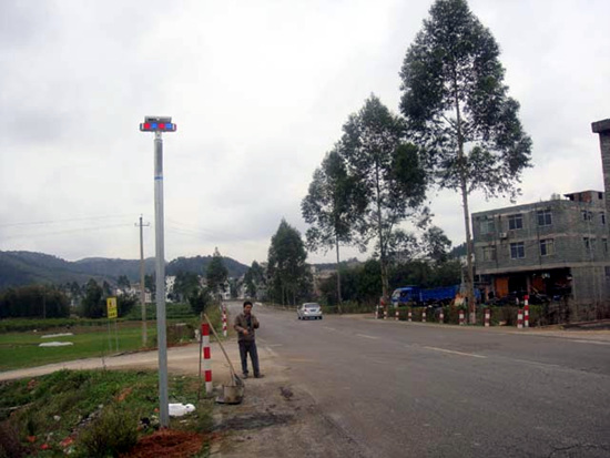 此外,在我縣國道、省道、縣道村莊出入路口設置交通安全宣傳警示牌和太陽能警示閃光燈,教育和提醒農(nóng)村交通參與者自覺遵守交通法規(guī),注意交通安全,確保農(nóng)村群眾平安出行。