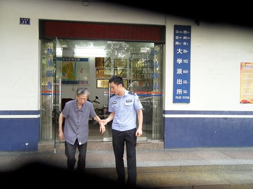 5月3日下午15時30分,一名老婦人被熱心群眾送到大學派出所,該老婦人在街上游蕩,不知方向。值班民警李明、禤昶跟老人交談,發現老人的記憶力下降,一時說自己被人綁架到夏郢,一時說自己無兒無女沒有住處。