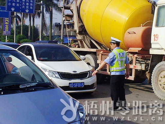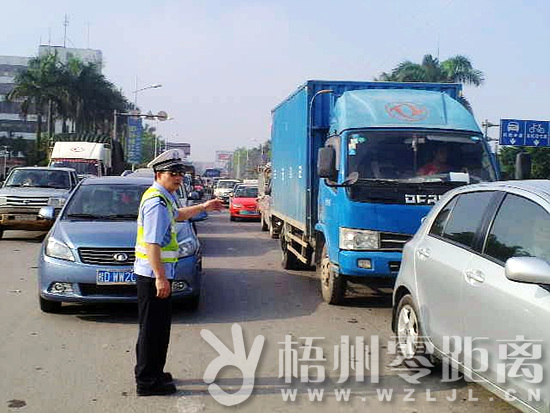 西江大橋上接長洲島,下接紅嶺小區,附近有機場和多間學校,還有裝修材料市場及農貿批發市場,是梧州南北連接的交通要道,名副其實的“大動脈”。鑒于車流量大,民警從4月20日至今堅持24小時執勤。