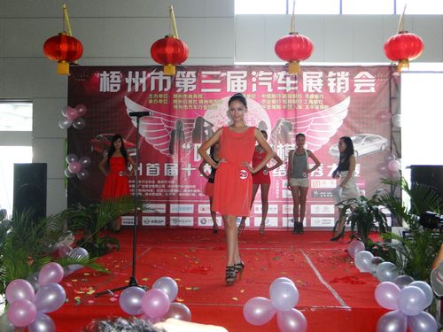 ??? 梧州零距離網訊 (記者 黃東瑩)5月25日,由梧州市商務局主辦,梧州市汽車協會、梧州日報社承辦的為期三天的梧州市第三屆汽車展銷會在市文化中心舉行。本次展會規模盛大,共有21家車商參展,參展品牌多達數十種,參展車輛達到150多臺。車展現場還設有梧州首屆十大車模網絡選秀大賽,引爆車展人氣。