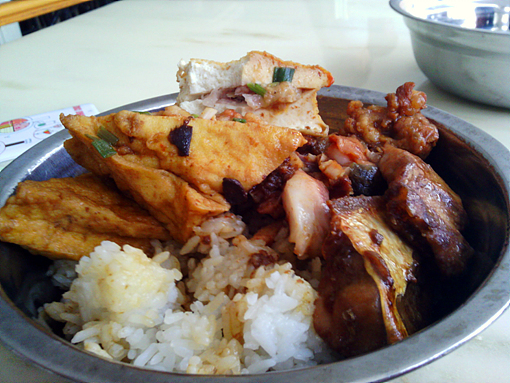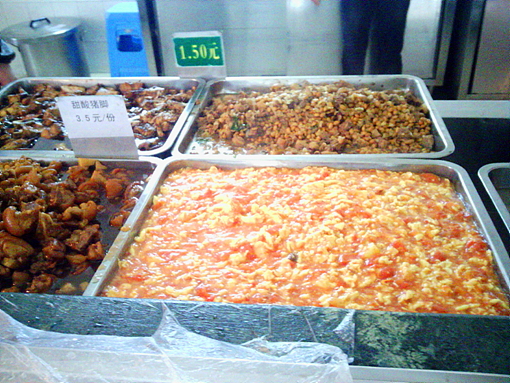 ????但其實對于大部分的人,最重要的還是飯菜的質量,其他的都只是浮云。學院食堂的平均物價水平都“還好”——不算便宜,但是也跟“貴”沾不上邊。一般,純葷的菜色,比如蒸排骨,水煮魚,鴨肉,雞肉等售價在2.0元左右。而木耳炒雞肉,西蘭花炒鴨肉等售價在1.5元和1.8元之間波動。素菜如大白菜0.7元,紅燒茄子1.5元,清炒黃瓜1.0元。當然,有些很好吃的比如燒鴨,白切雞,甜酸豬蹄什么的,平均在3.5元,雞腿鴨腿,每只3.0元,炸魚塊1.8元。